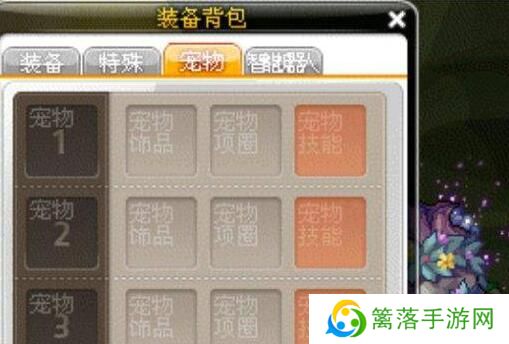 3、接着我们点击装备界面顶部菜单中的“宠物”选项。