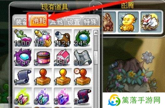 5、在背包界面中选择顶部菜单中的"消耗"选项。